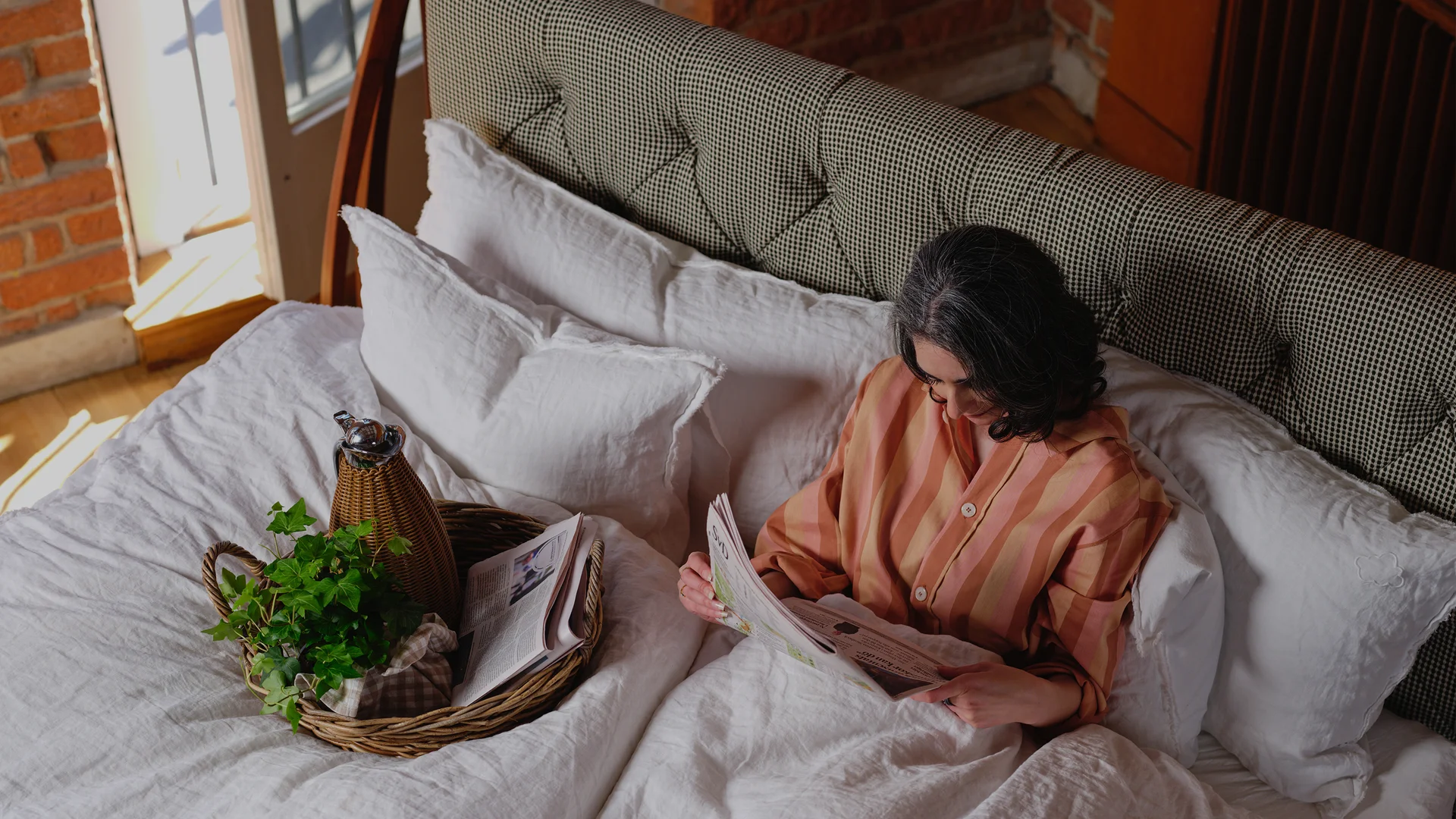 Tidlös gavel med klassiskt djuphäftning. Ett enkelt sätt att ge ett lyft till din säng och sätta stil på ditt sovrum.