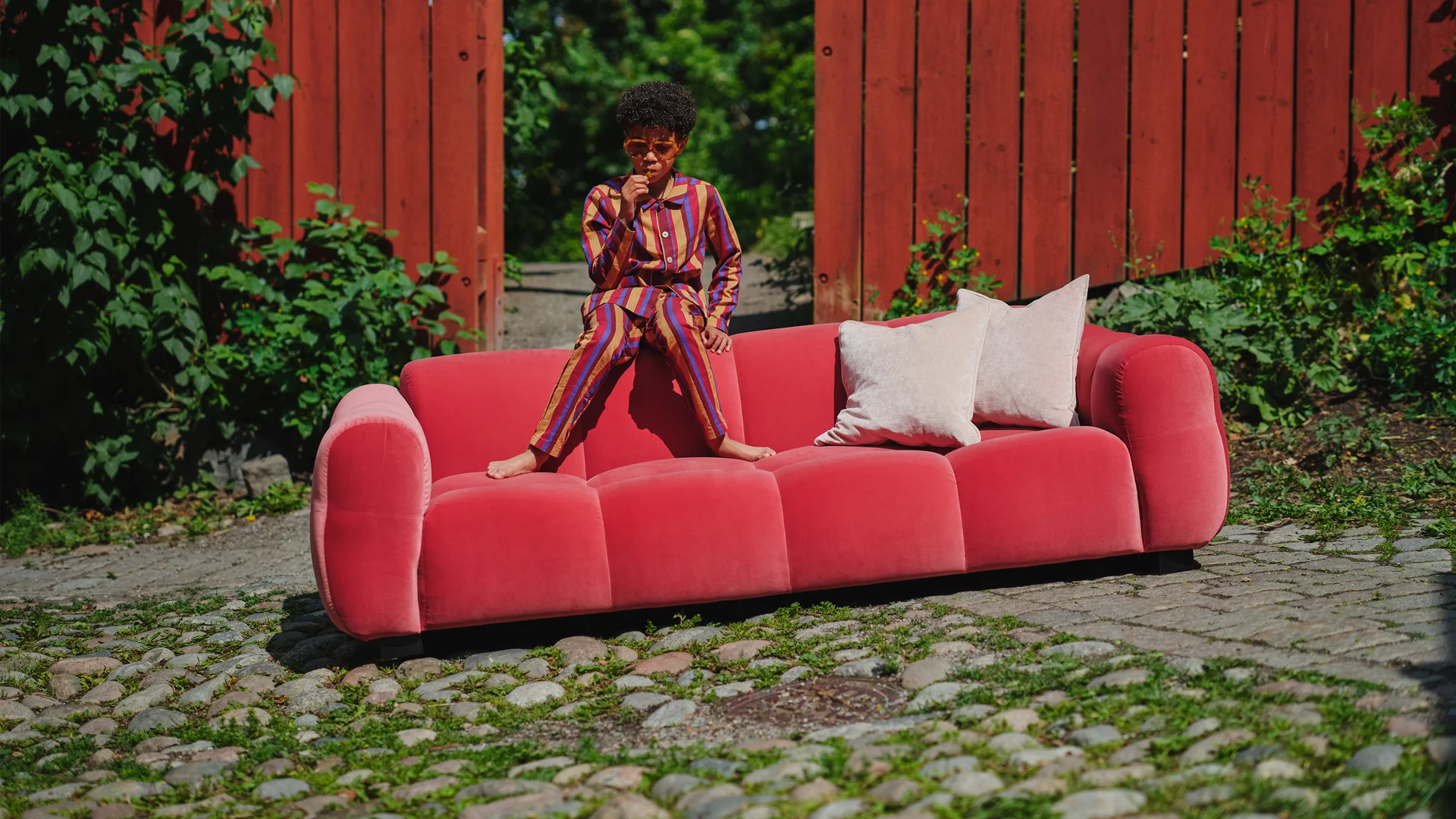 Rymlig soffa med djup sits, skön komfort och låga, breda armstöd.