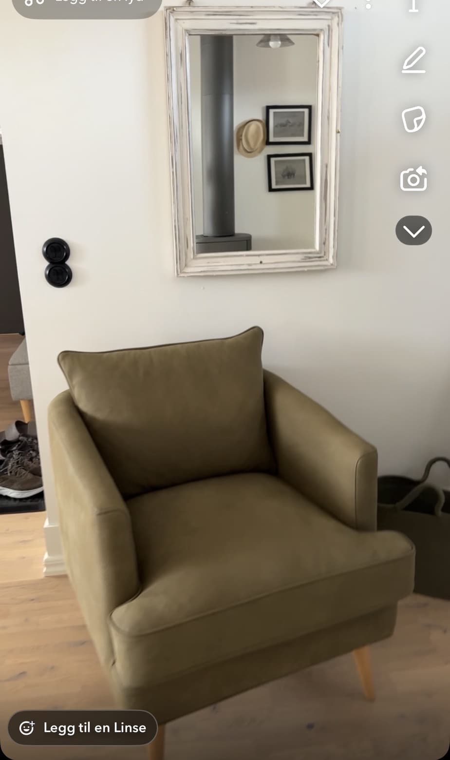 Super fornøyd med vår duvan lenestol i mykt skinn. Nydelig grønnfarge!! Blir mange gode lesestunder foran peisen:)