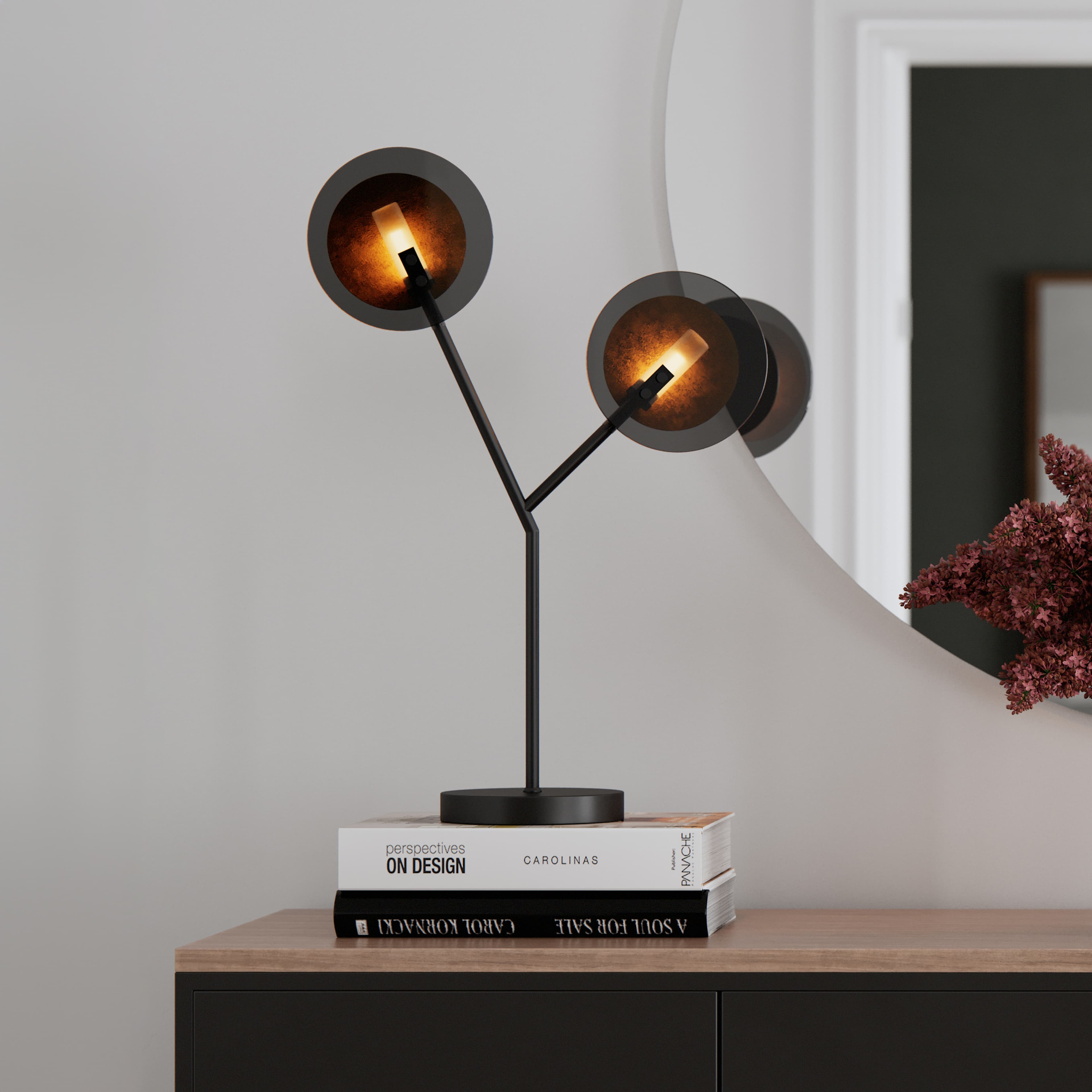 Här är en lampserie i svart metall där du har du möjlighet att ställa in ljuskällorna efter tycke och smak. Då lampan inte har någon baksida, kan du välja om du vill att ljuskällorna, som ryms i ett rör av frostat glas, ska vara i fokus eller om du föredrar dem dolda och på så sätt stråla ut på sidorna bakom den guldfärgade metallskivan. Turno finns som taklampa, plafond, bordslampa och golvlampa.