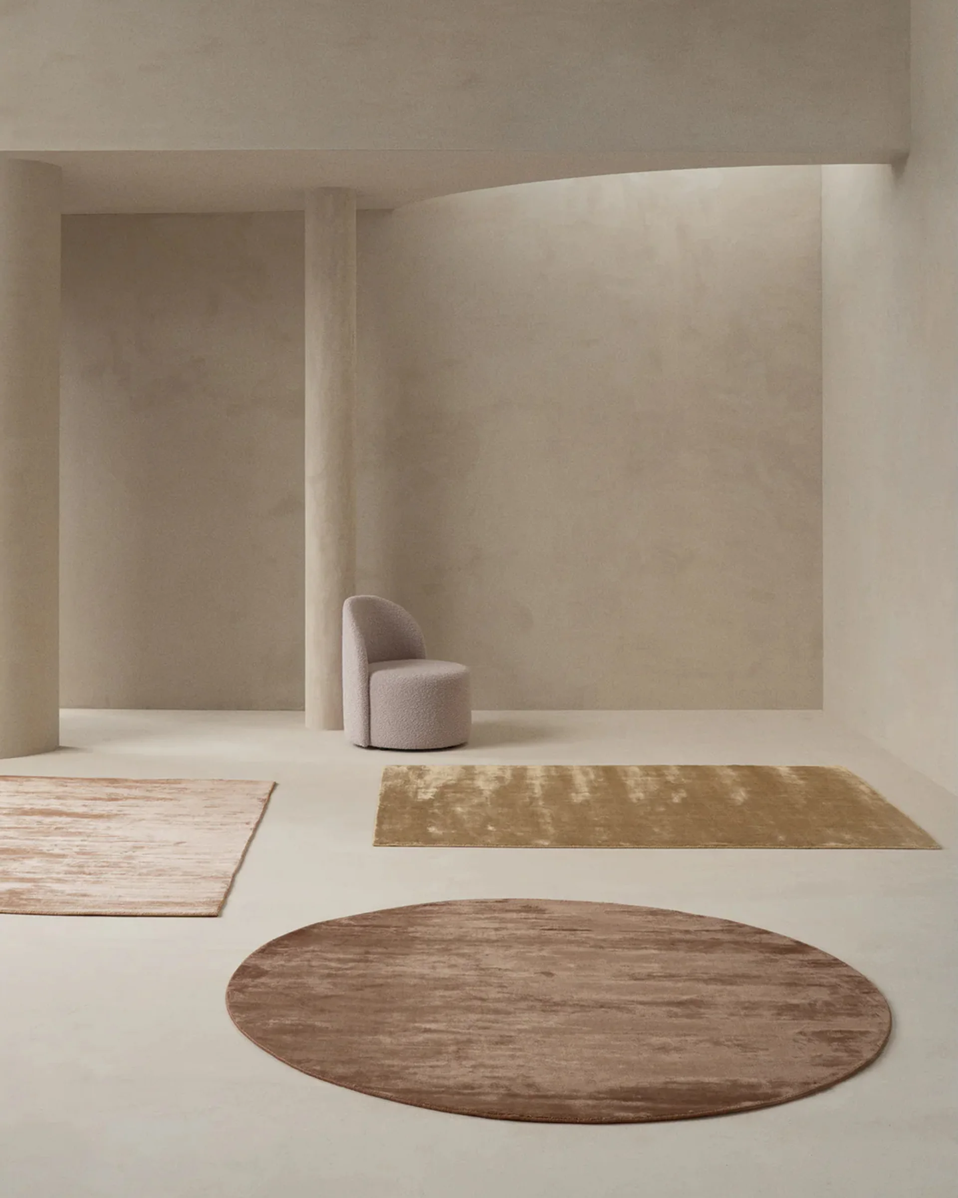 Finns i neutrala toner, jordnära färger och mörkare kulörer som skapar en elegant bas i rummet. En stilren och lyxig matta med silkeslen känsla under fötterna, tillgänglig i både rund och rektangulär form.