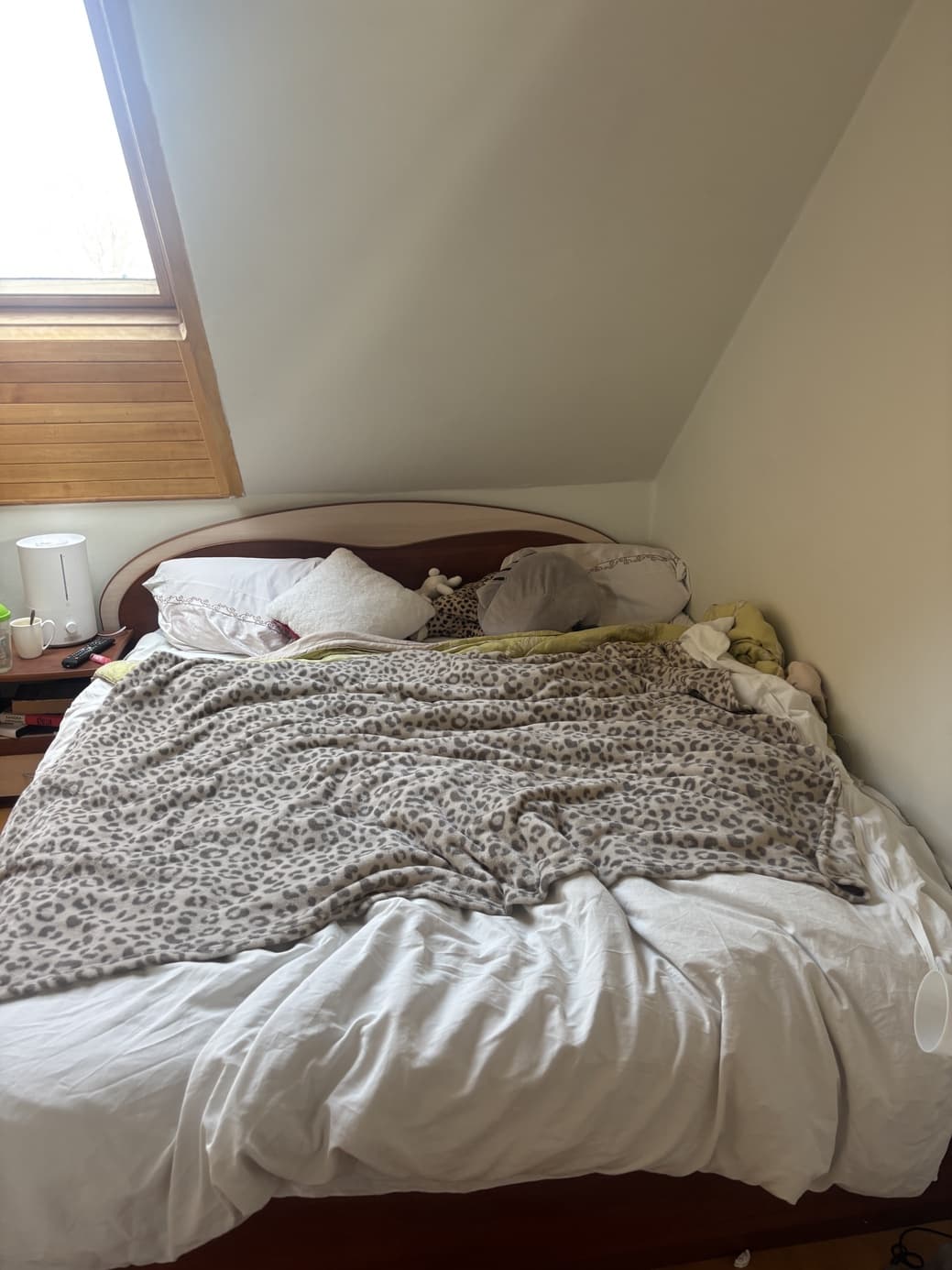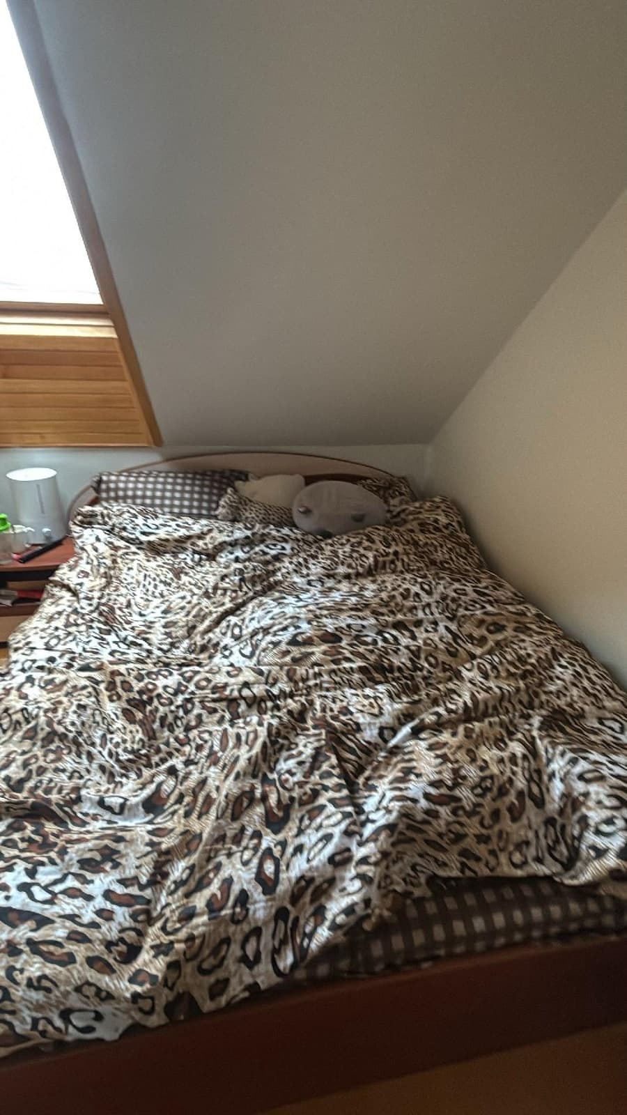 Åh. herregud. Det här är värt varenda krona!!! Titta på före- och efterbilderna av min säng! Det här täcket är helt galet!! Min säng är 180*200 cm och jag köpte dubbeltäcket. Ni kan se hur det ser ut på sängen. Jag funderade mellan Megafluff och Midifluff, men jag funderade på att använda det hela säsongen så jag valde Midi. Effekten är bokstavligen nästan densamma som Mega! Jag låg ner och jag kunde i princip göra snöänglar på det. Det blir för närvarande ner till 1-2°C på natten, och det är inte för varmt när man har pyjamas på sig. Dessutom har den sydda sidorna, så dunet är lite mer kontrollerat. När jag bäddar sängen bryter jag mot reglerna lite och skakar den, sedan glider jag med handen över hela den. Den glider inte så mycket under natten (vilket var riktigt konstigt, jag tenderar att flytta mig i sidled till sängen under sömnen), så jag behöver inte oroa mig för att bädda på morgonen eftersom jag bara låter täcket vara som det vill. Om du märkte på föregående bild hade jag flera filtar och de trasslade ihop sig kaotiskt, så inget mer krångel med ett enkeltäcke!! Leveransen tog en vecka, inga problem! En sak jag lade märke till är att trots att måtten är 240*220 ser det mycket mindre ut, så jag rekommenderar definitivt att skaffa dubbeltäcket och låta det falla över istället för att din säng ska se naken ut 🥲