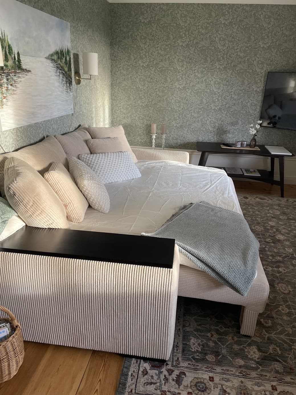 Hi there! 🌸 We’re absolutely thrilled to hear that you love your sofa! 😍✨ It makes us so happy to know it’s comfy for both sitting and sleeping, and that you’re loving the luxurious feel of the fabric. Your kind words made our day💌 Best wishes, Nils 🌻