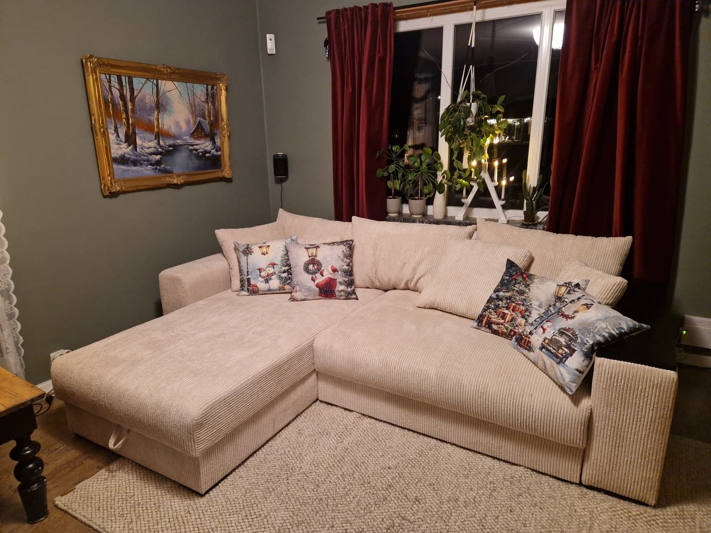 En mysig soffa som hela familjen på 5 personer får gott om plats i och bra med bäddsoffa så man kan erbjuda gästerna möjlighet att sova kvar. Nu hoppas vi att den håller sig ett tag så den inte blir nedsutten direkt som jag upplevt med andra soffor (men detta är min första sweef soffa) Återstår att se och får utvärdera med tiden 😊 Björnen är skön och fin och jag uppskattar att den är "ommöblerbar vänlig" i och med att divanen kan monteras på båda sidor. Jag beställde en "pre made" för snabb leverans, det är de enda jag ångrar för den kanske varit ett visningsexenplar? (Gissar jag i alla fall) Eftersom soffan hade något märke och lite lösa trådar och sådär. Och hade jag förstått de innan hade jag valt en som inte var pre-made med ett annat tyg. (Älskar detta tyget också men hade föredragit en annan roligare färg)