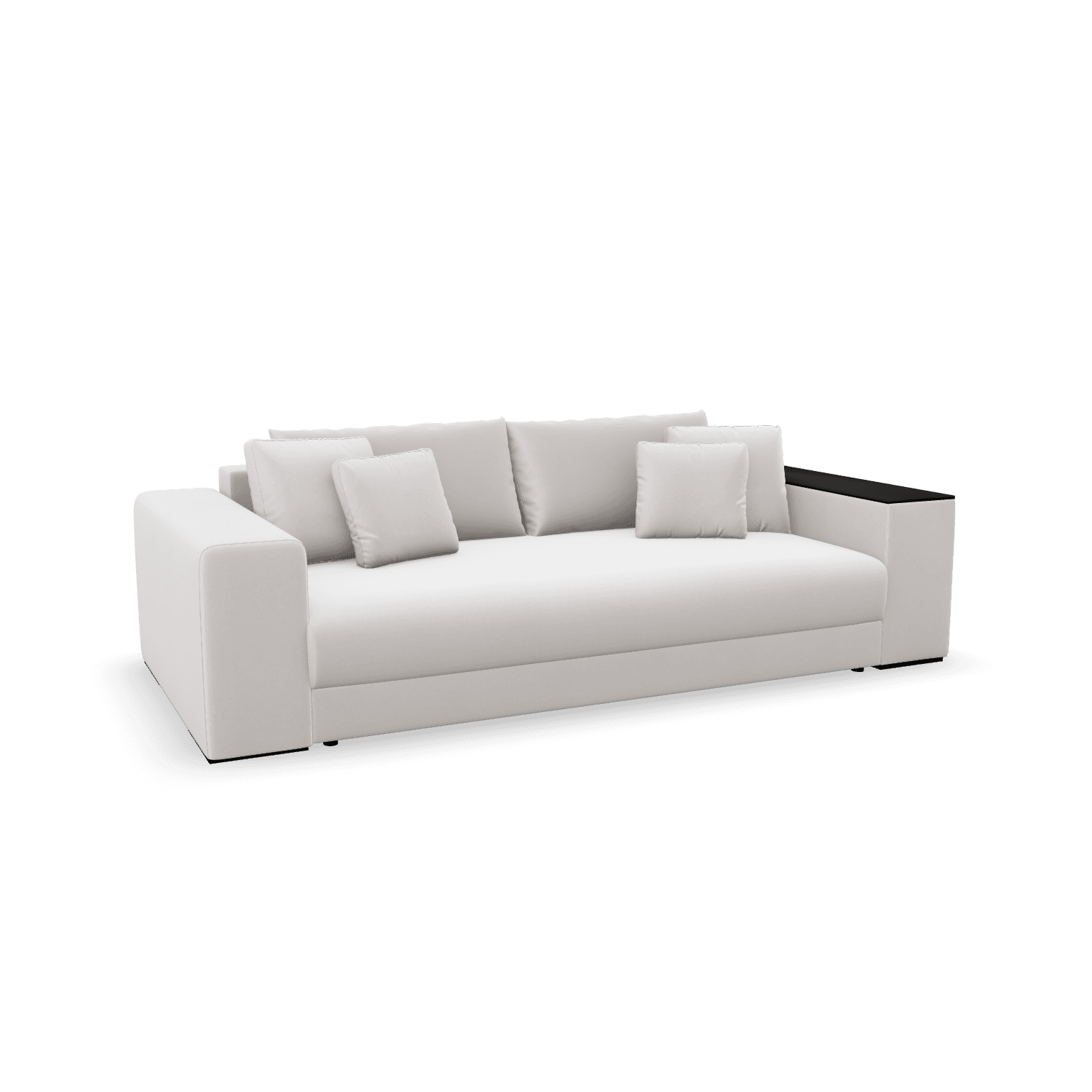 Bäddsoffan har en smidig framåtbäddning på 160cm och som om det inte var nog - dold förvaring under sitsen och i armstödet med lock.