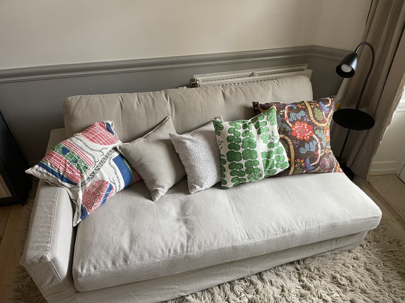 Jätte fin soffa! Lite skrynklig linne look. Precis vad jag var ute efter. Jätte nöjd!
