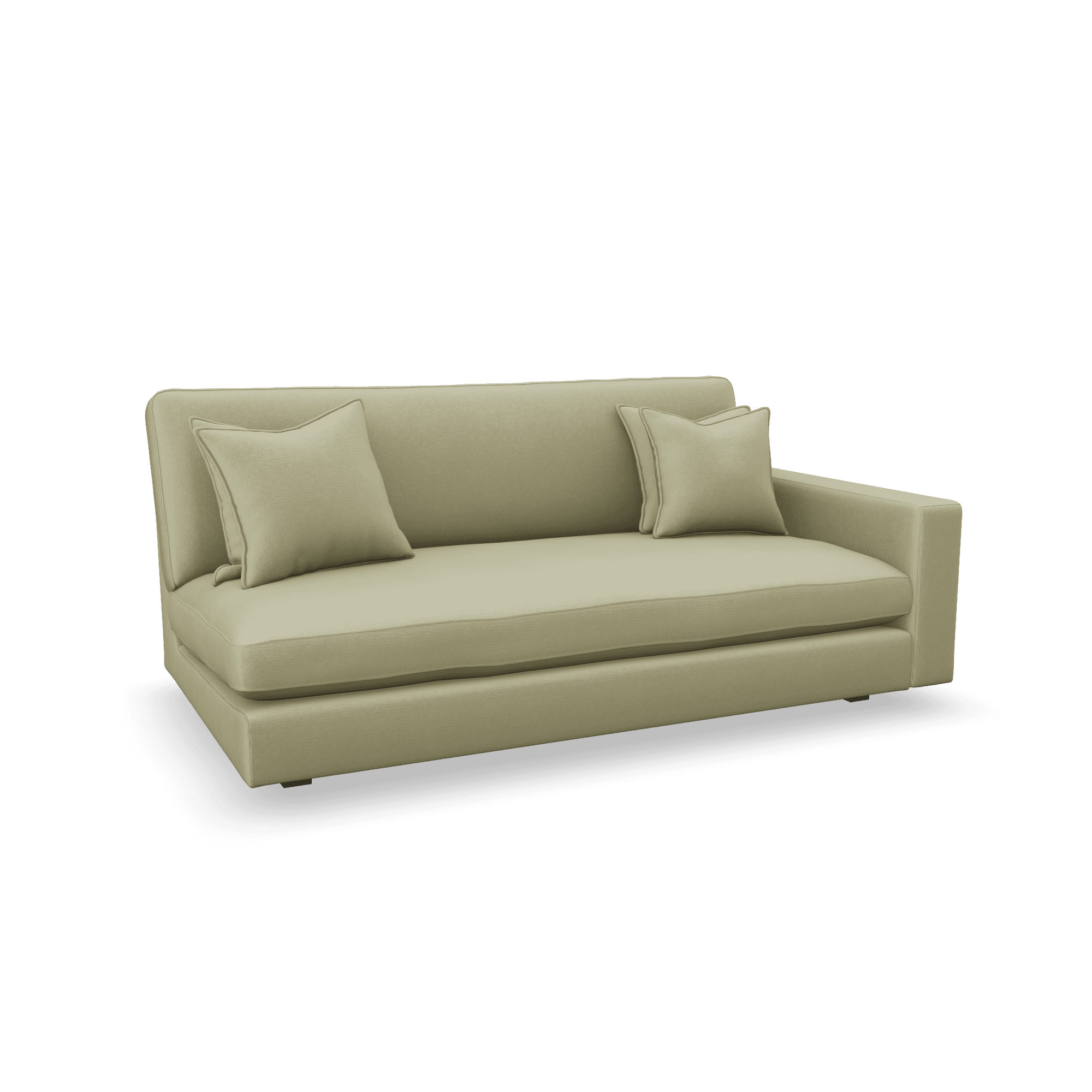 Denna soffa saknar armstöd på vänster sida vilket ger ett öppet, inbjudande intryck i ditt rum.