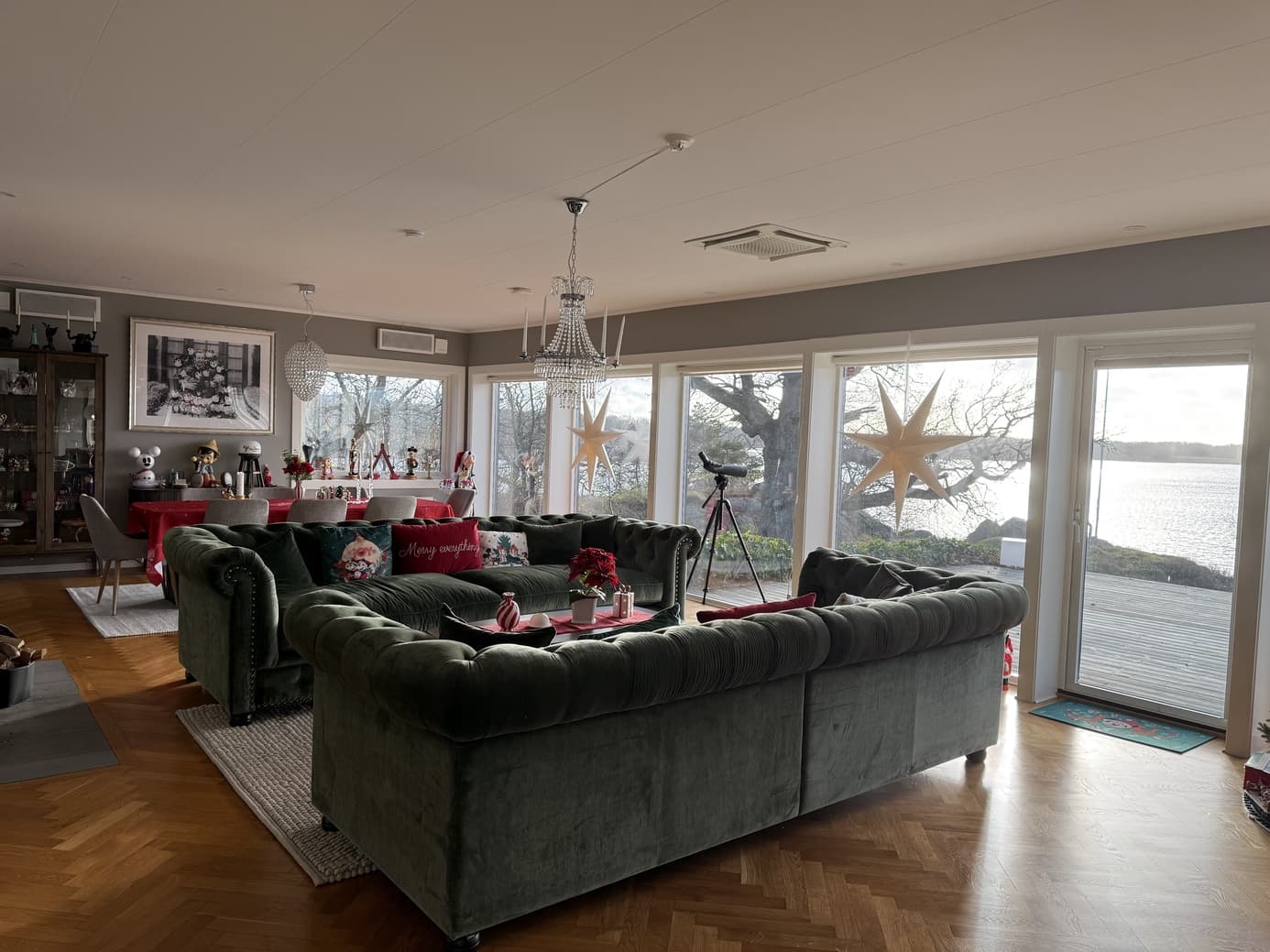 Hej Maria! Vilka magiska bilder! 💚😍 Så underbart att höra att ni hittade era drömsoffor i Buffeln Gigantisk! 💛 Att ni tycker att det är de finaste och skönaste sofforna ni någonsin sett gör oss otroligt glada. Och vad kul att tyget blev så bra! Tyvärr kan vi inte erbjuda inbärning i hela Sverige, och vi beklagar verkligen att det ställde till det för er. Vi förstår att det måste ha varit otroligt tungt. Vi vill också be om ursäkt om vi missat att återkoppla kring ert tillägg. Jag kunde tyvärr inte hitta något om detta, men självklart ska man få svar när man hör av sig 💌 Tack snälla för att ni delade med er av er upplevelse och för de fantastiska bilderna! 🌟 Bästa hälsningar, Nils 🌻