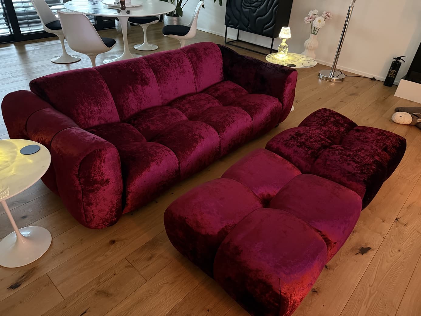 Jättefin soffa, färgen är helt enkelt spektakulär! Sammetstyget är otroligt lätt att sköta!