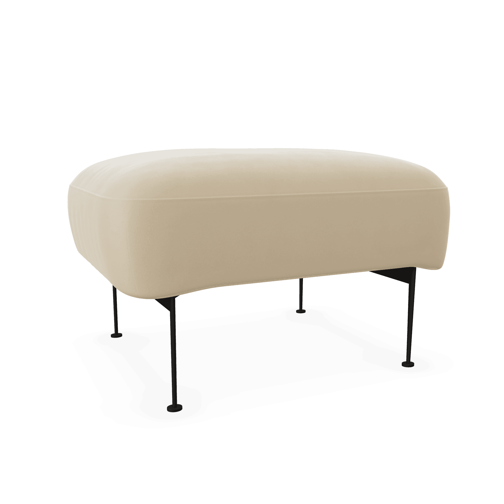En nätt pall som stoltserar på höga stålben. Den industriellt, avskalade stommen står i kontrast till en fluffig, dunfylld sittkudde. En skön pall att sitta på eller slänga upp fötterna på, när du läser, chillar, slumrar till eller samtalar.