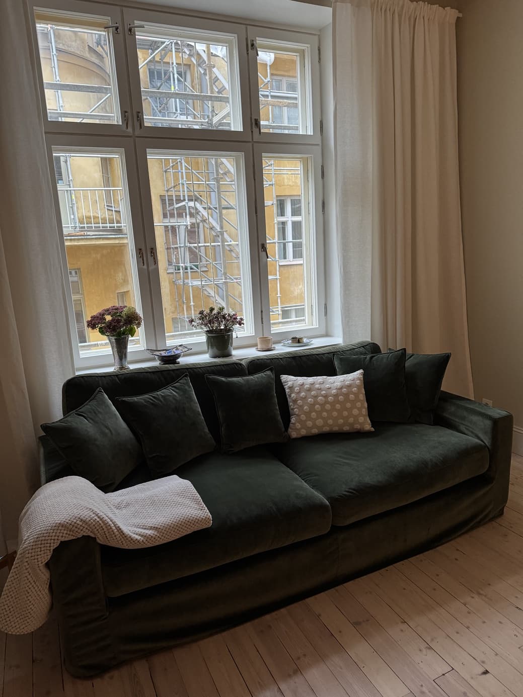 Fantastiskt skön soffa med gott om utrymme. Kvalitén på textilen och kuddarna lever verkligen upp till förhoppningarna.