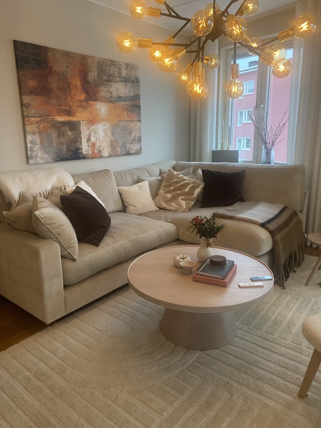 Hej Åsa! Vilken underbara bild, eran nya soffa passar verkligen så bra hemma hos er 😻✨ Så roligt att ni valde Cozy Corner i beige sammet, så himla snyggt! Och vad kul att den är så magiskt skön och fluffig precis som man önskar ☺️ Att den dessutom passade perfekt i er lägenhet gör oss extra glada! Tack för att du delade med dig. 💛🛋️ Bästa hälsningar, Nils 🌻
