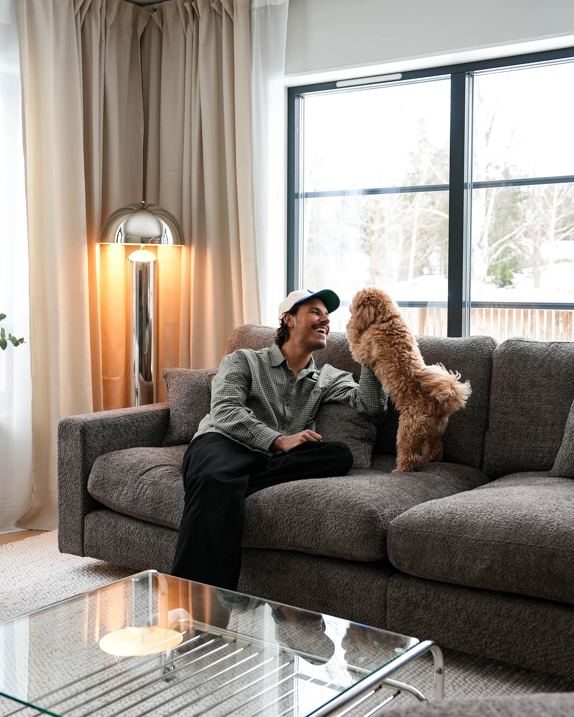 En otroligt skön soffa som passar perfekt för våra behov i ett mindre vardagsrum. Den kombinerar en lyxig känsla med ett stilrent, minimalistiskt uttryck, en perfekt balans mellan komfort och design.