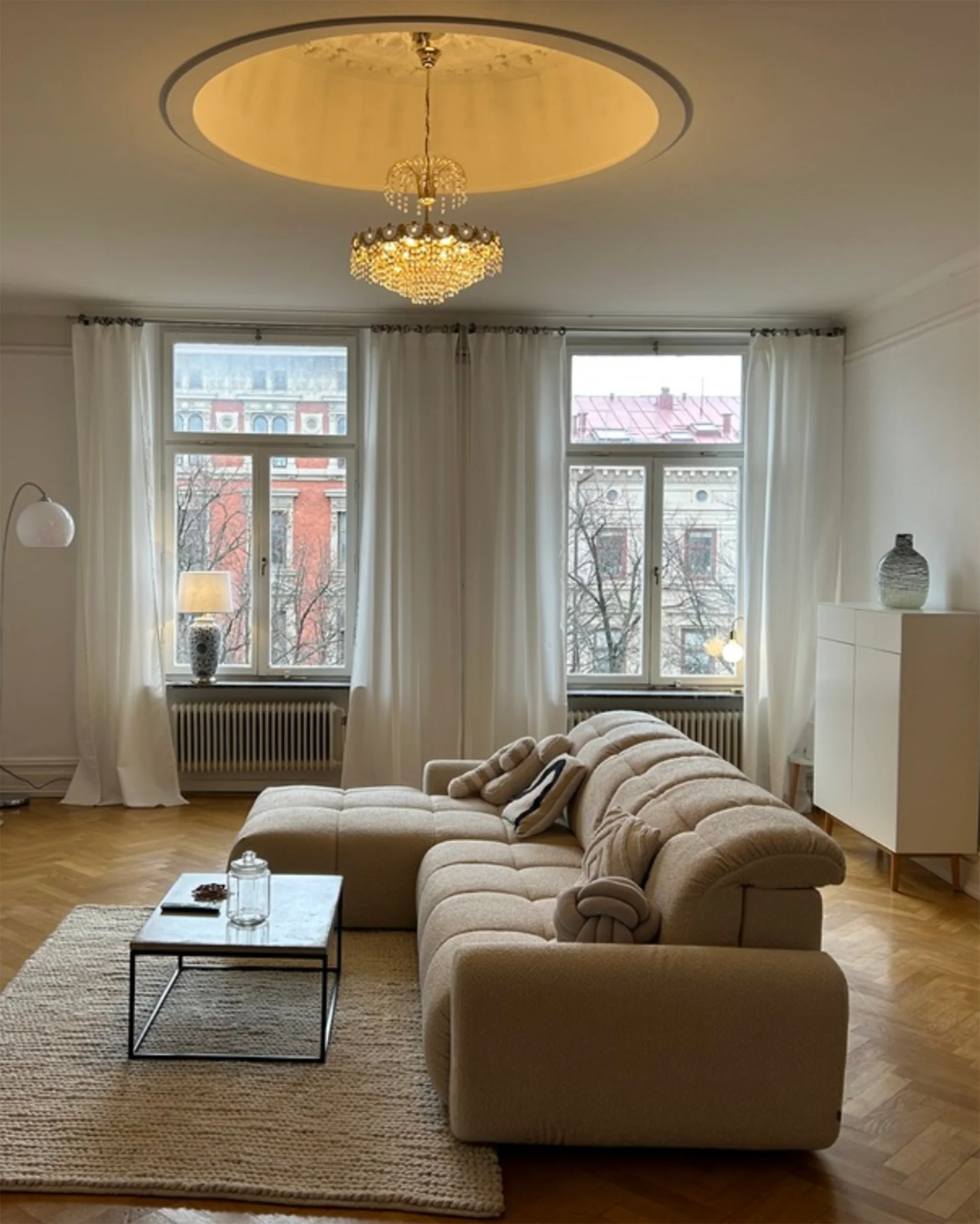 Superskön soffa. Älskar det justerbara ryggstödet. Det är en rejäl pjäs som inte får plats överallt, eller kan kännas oproportionellt stor. Men i min lägenhet står den helt otroligt bra. Tyget är jättefint, men det blir till att inte äta choklad osv i soffan nu för är väldigt rädd om min nya, fina fantastiska soffa!