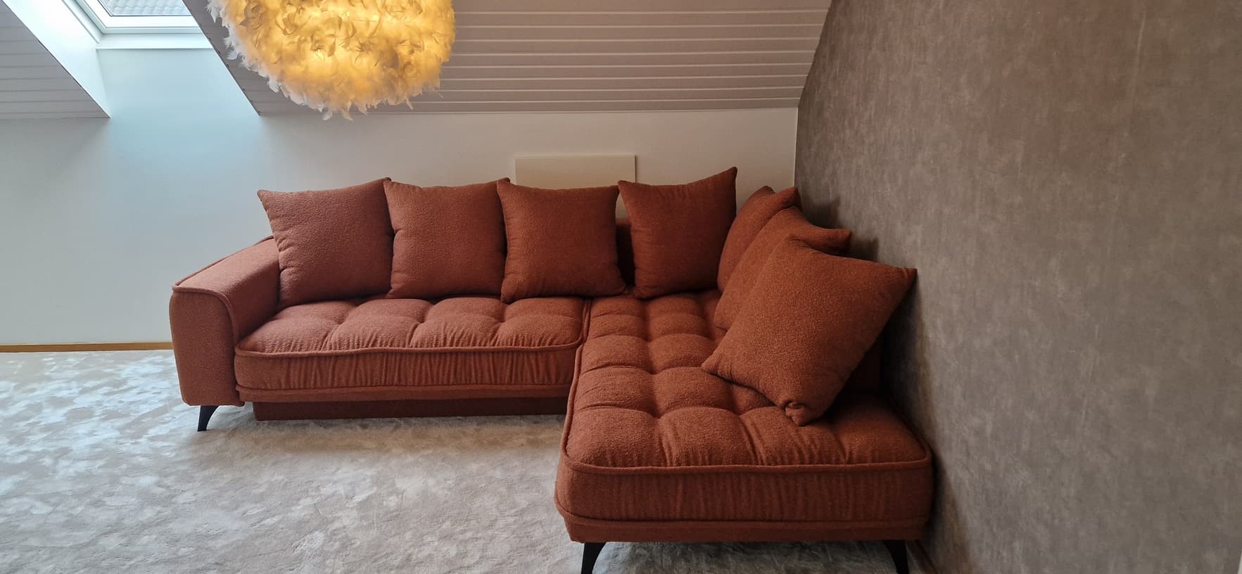 Hej Luliana! Åh vilka fina bilder 😻 Vad roligt att höra att du gillar både färgen och tyget och vi håller med super snyggt ✨🛋️ Vi är så glada att du tycker din soffa känns speciel och inte som vilken soffa som helst! Härligt också att du upplever den som enkel att bädda, det är ju en viktig del av bäddsoffa 👌🏻🥰 Och precis som du säger med en bäddmadrass blir sovkomforten ännu bättre. Tack för att du delar med dig! 🛋️ Bästa hälsningar, Nils 🌻